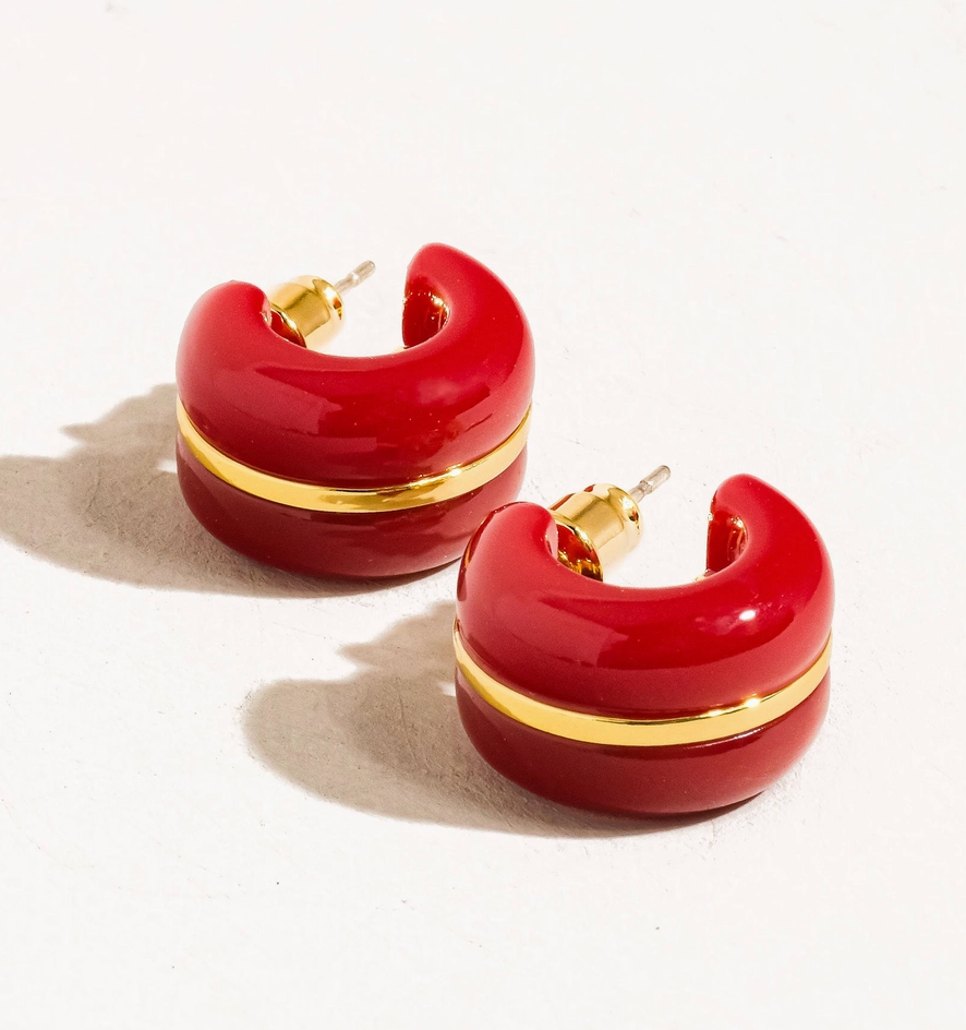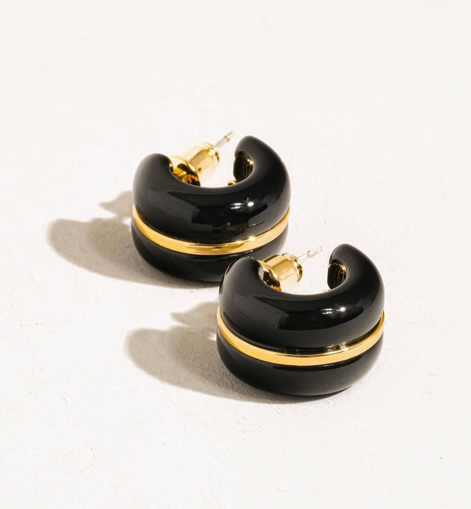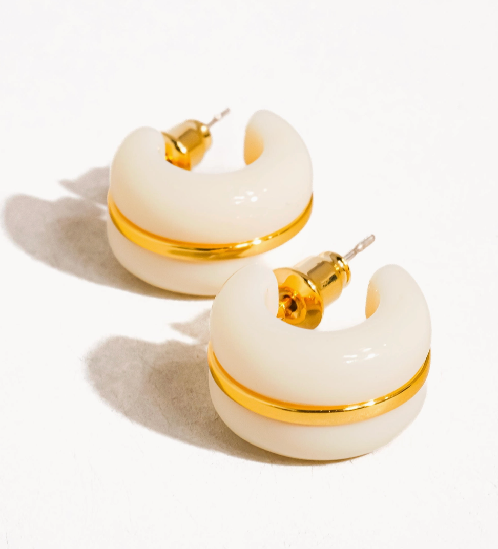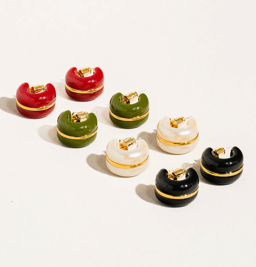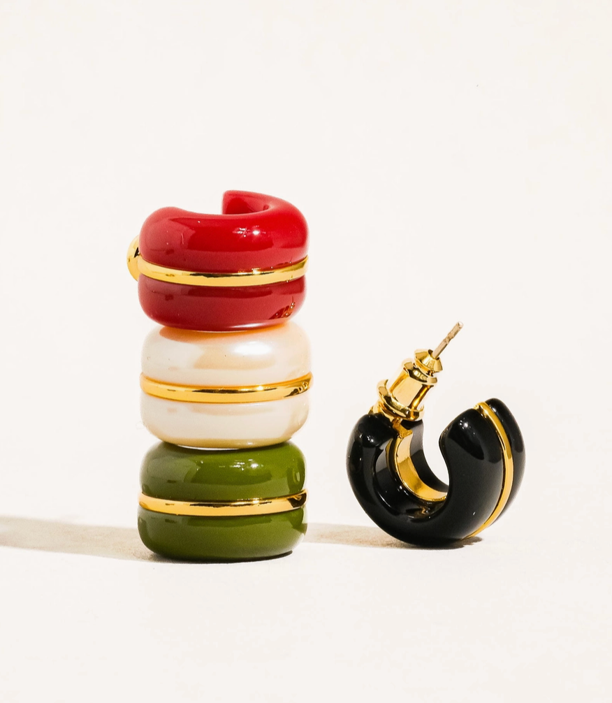 Our newest baby hoop, 18k gold plated earring in four different colors! Nickel free + lead free.