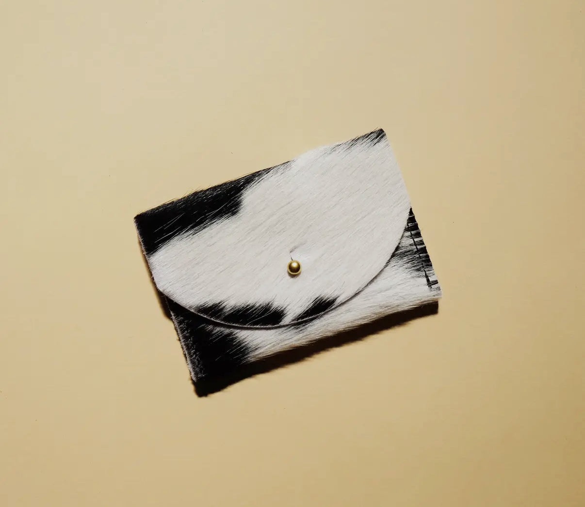 The perfect fun little cardholder for quick and easy daily use. Handmade from hides and unlined with a brass fastener that’s made to last!