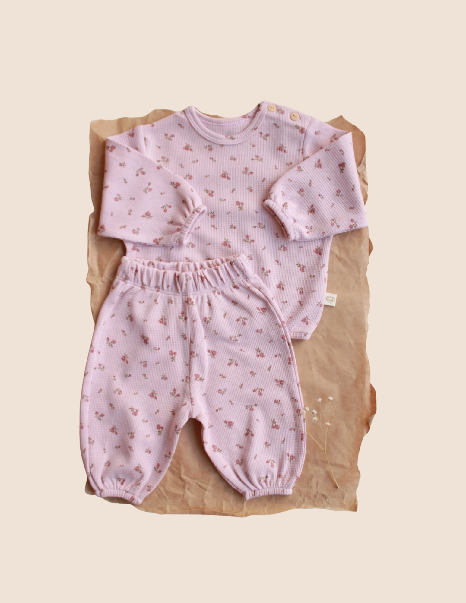 Wrap your little one in comfort and style with our Grape Waffle Baby Set. This charming two-piece outfit features a soft, breathable waffle-textured fabric with a delicate floral print, perfect for everyday wear. 100% Cotton. This style runs larger than usual, so consider sizing down for a better fit